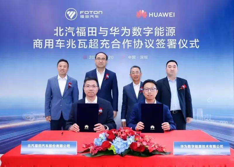 日前,北汽福田汽车股份有限公司(以下简称“北汽福田”)与华为数字能源技术有限公司(以下简称“华为数字能源”)在深圳签署合作协议。双方将依托自身优势,打造多场景解决方案,构建兆瓦超充一张网。