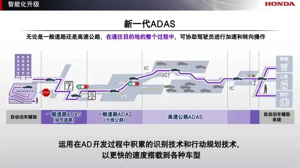 智能化方面的具体举措,本田将自主开发全新一代ADAS,可在导航设定目的地后,协助驾驶员在普通道路(含城市道路)和高速公路上完成加速、转向操作,运用了AD开发中积累的识别和行动规划技术。该技术计划于2027年在北美和日本的纯电动及混合动力主力车型上广泛搭载。因电力保障和SoC芯片冷却等技术问题,初期主要应用于纯电动和插电式混合动力车型,而本田先进的混合动力系统在解决这些问题上有独特优势,且借助MM理念可减少对车内空间和设计的影响,实现小型车辆搭载。在中国市场,本田将与Momenta合作开发适合中国道路环境的新一代ADAS,并搭载于未来所有全新车型。